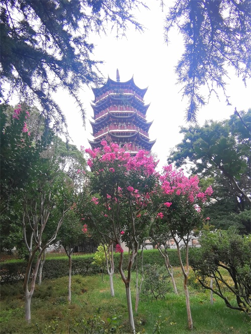 1996年4月,后院的瑞应山上,又新建成一座高48米、七层八角的"瑞应塔"。这是一座可供游人登楼远眺的跌旋式观览塔。