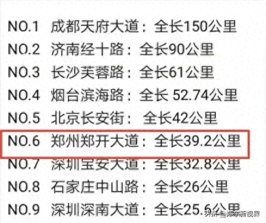 在全国最长的城市道路排名中,郑开大道以全长39.2公里赫然在列其中第6名。在城市景观大道中,长安街之于北京、深南大道之于深圳、天府大道之于成都一样,郑开大道之于郑州也名副其实。