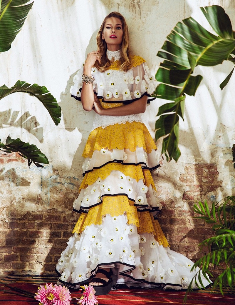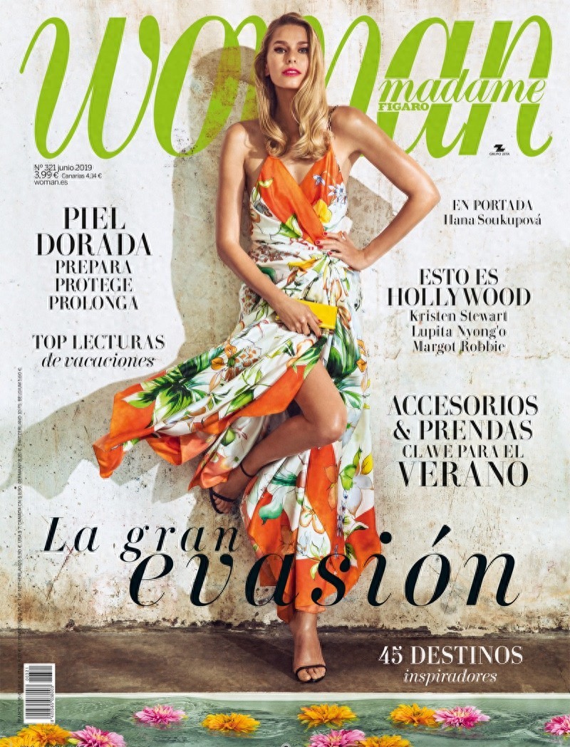 HANA SOUKUPOVA 为西班牙女人设计热带印花 摄影师Richard Ramos拍摄了 《西班牙女人》 封面。由Hana Soukupova主演,图片显示她穿着来自 Carolina Herrera 的花卉印花连衣裙。在时尚亮片中,Hana 采用由Marta Lasierra 设计的热带印花。这位金发女郎穿着 Dolce & Gabbana 和 Michael Kors Collection 等品牌的个性单品。
