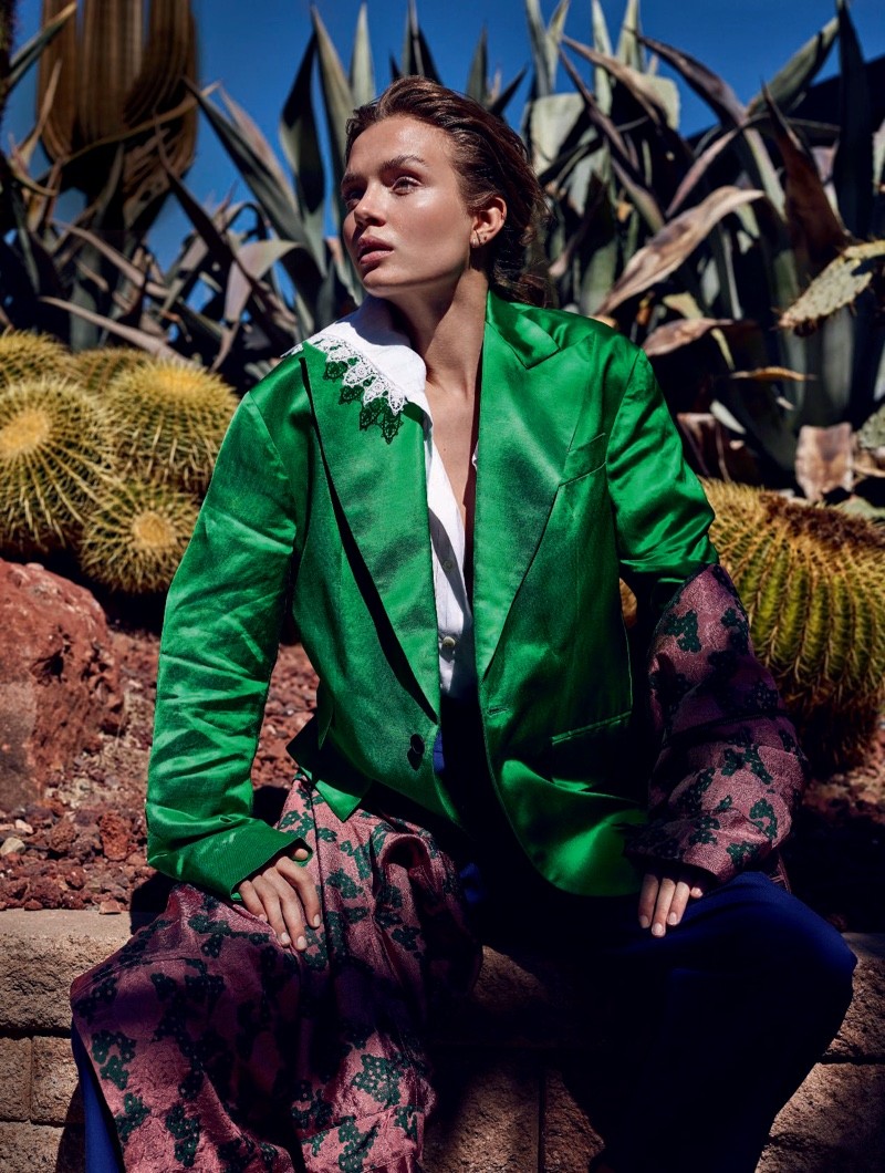 JOSEPHINE SKRIVER 为意大利 MARIE CLAIRE 打造热带风情造型 约瑟芬·斯克里弗(Josephine Skriver ) 到户外拍摄玛丽·克莱尔 ( Marie Claire) 意大利封面。在Marcin Tyszka的镜头下,这位丹麦模特身穿 Gucci 上衣、腰带和裤子,搭配 Cartier 珠宝。在时尚亮片中,约瑟芬拥有适合夏天的多彩外观。维多利亚的秘密天使由Elisabetta Massari设计,为 Valentino、Dior 和 Chanel 等品牌带来热带风情。