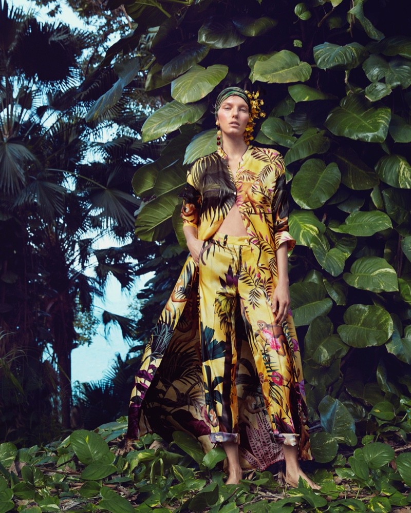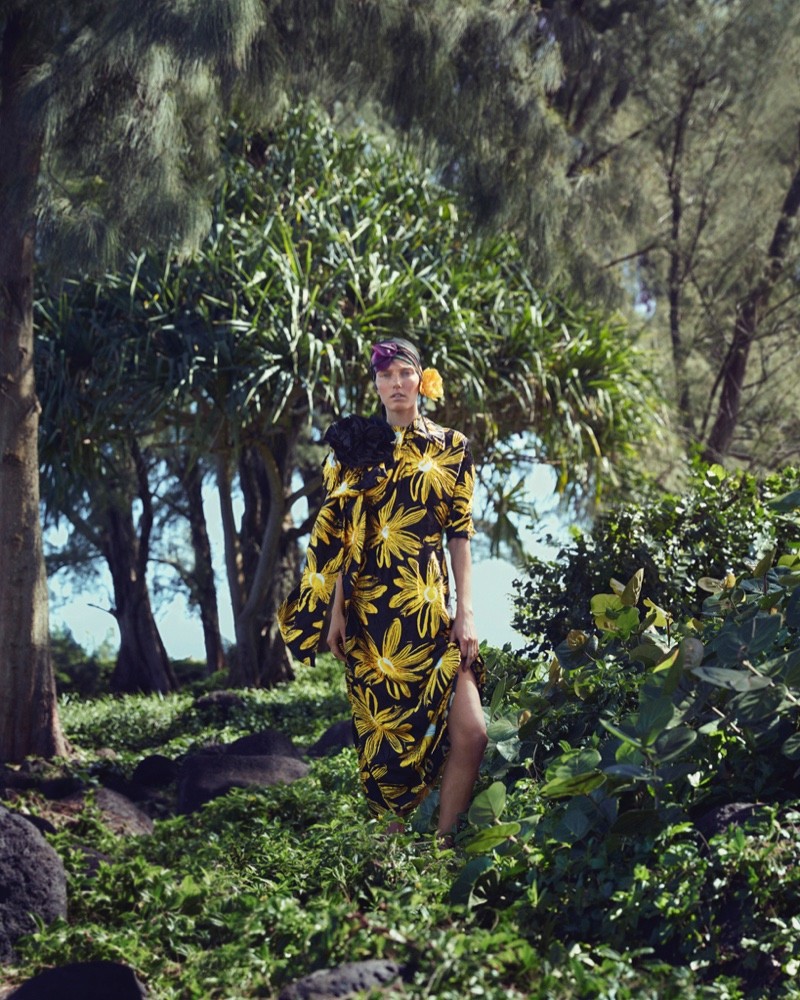 MARIQUE SCHIMMEL 身穿热带印花 Marique Schimmel前往夏威夷参加How to Spend it 杂志拍摄。由Andrew Yee(工作室管理)拍摄,这位金发美女以热带花卉图案为模特。造型师Rocky选择轻盈的连衣裙、别致的头饰以及宽松的裤子。Marique 穿着 Louis Vuitton、Miu Miu、Missoni 和 Blumarine 等品牌。