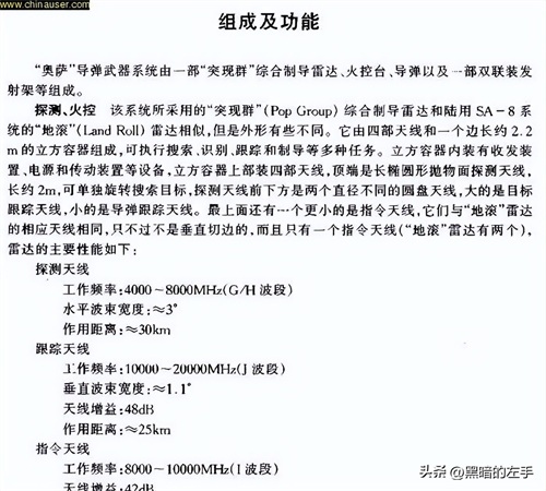 典型奥萨导弹系统的组成,发射架/弹库和搜索跟踪制导雷达。