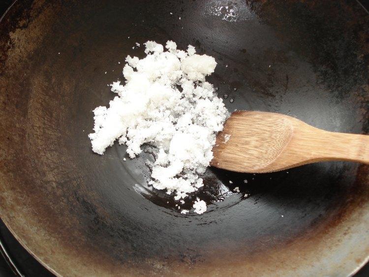 锅里放糖小火慢炒。