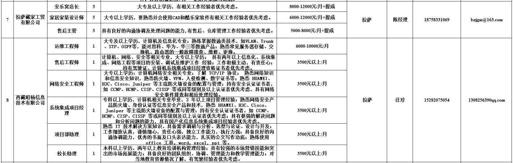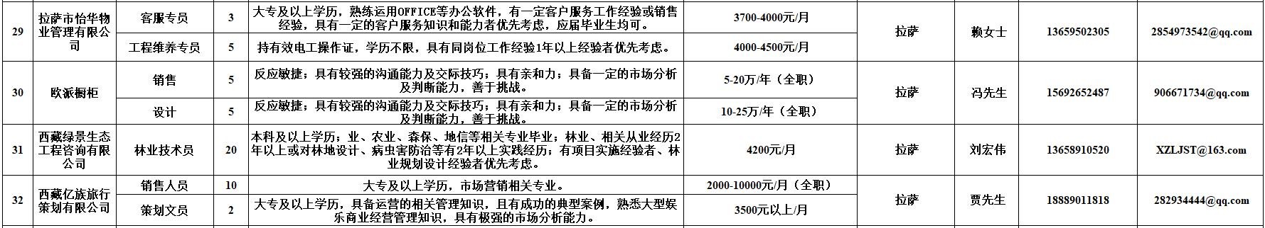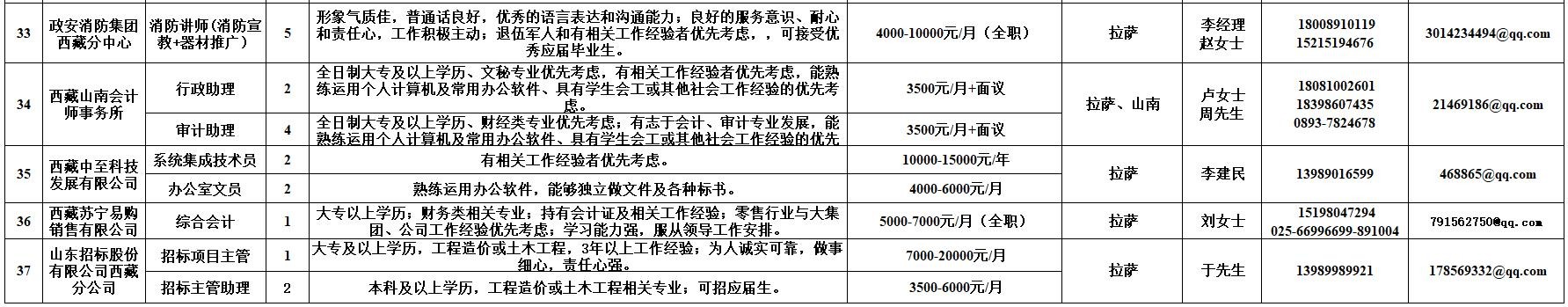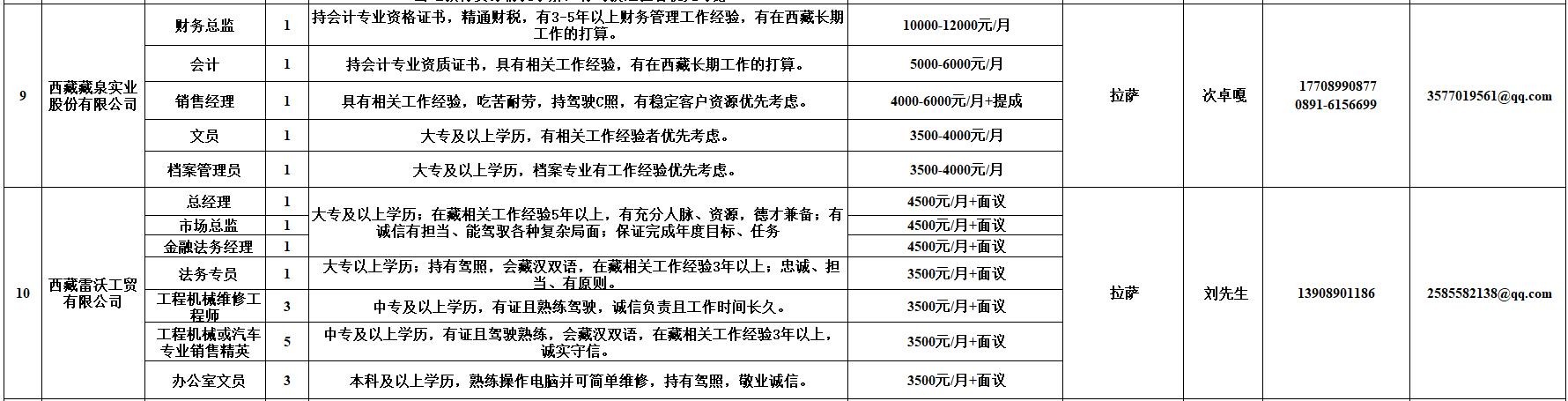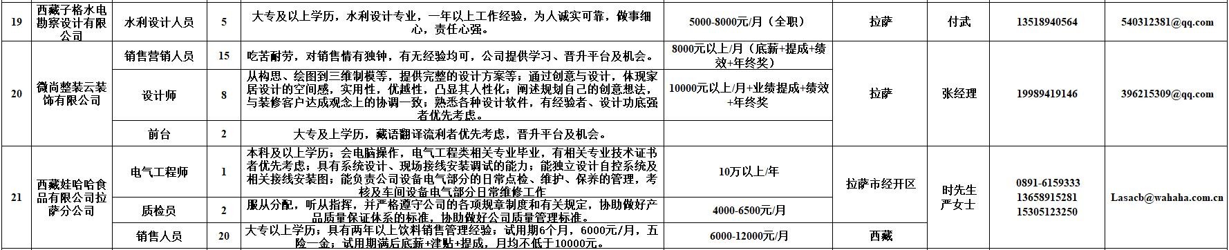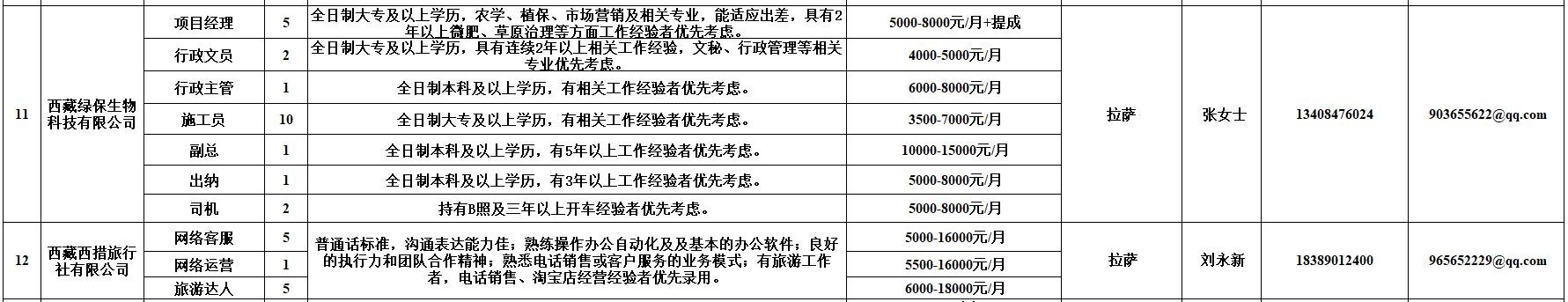 附:西藏自治区人力资源市场第十二期小型精品网络招聘岗位汇总表