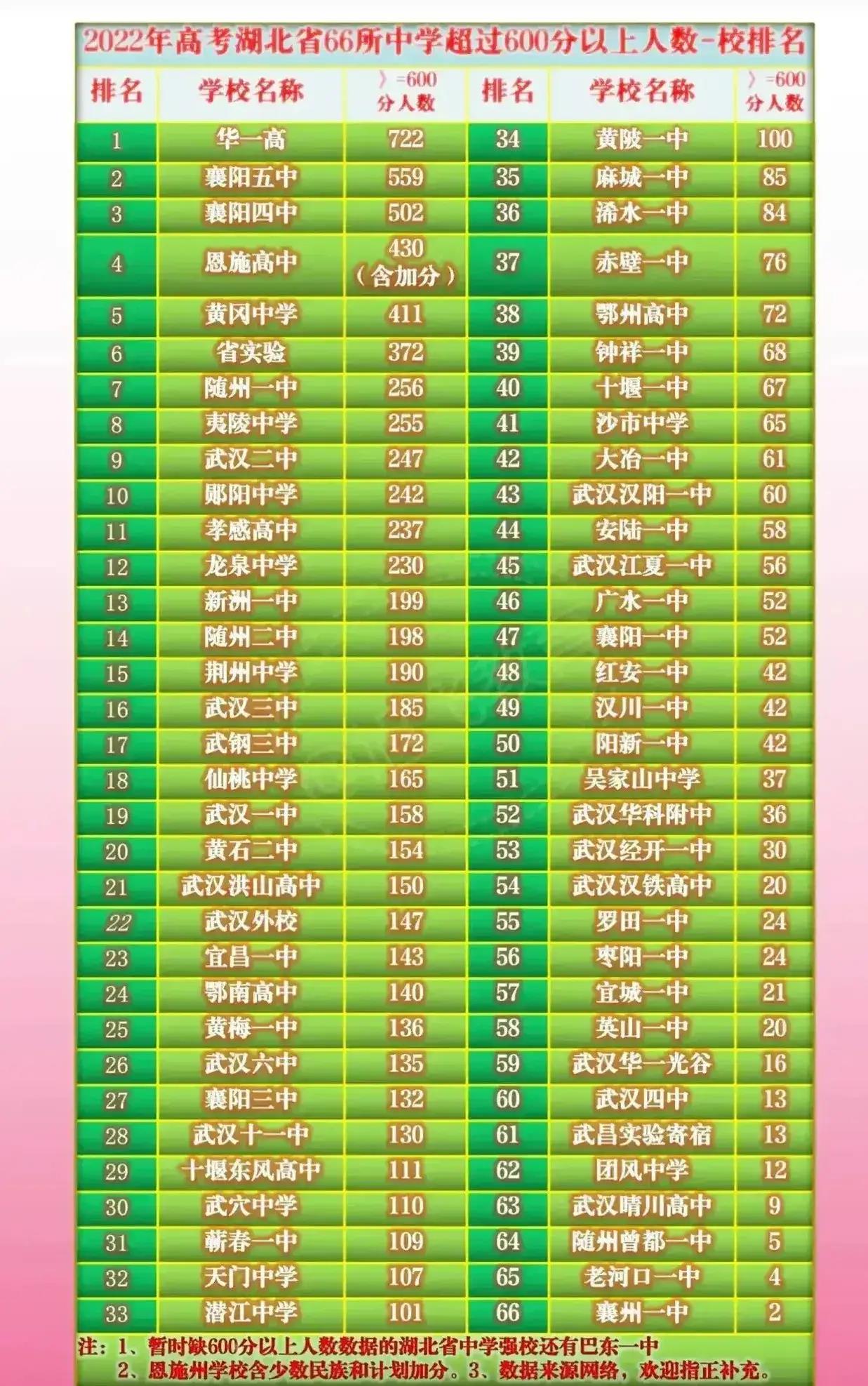还有2022的全国百强中学排行榜,襄阳四中也稍稍逊色于襄阳五中。