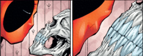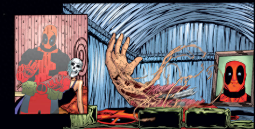 《死侍V1》的61期当中,出现了死侍与死亡的第一次邂逅,起因的是死侍被人杀掉误入了死亡的宫殿而见到了死亡。