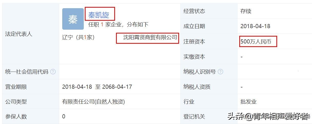 货真价实的富二代!德云社秦霄贤的公司曝光,注册资本高达五百万