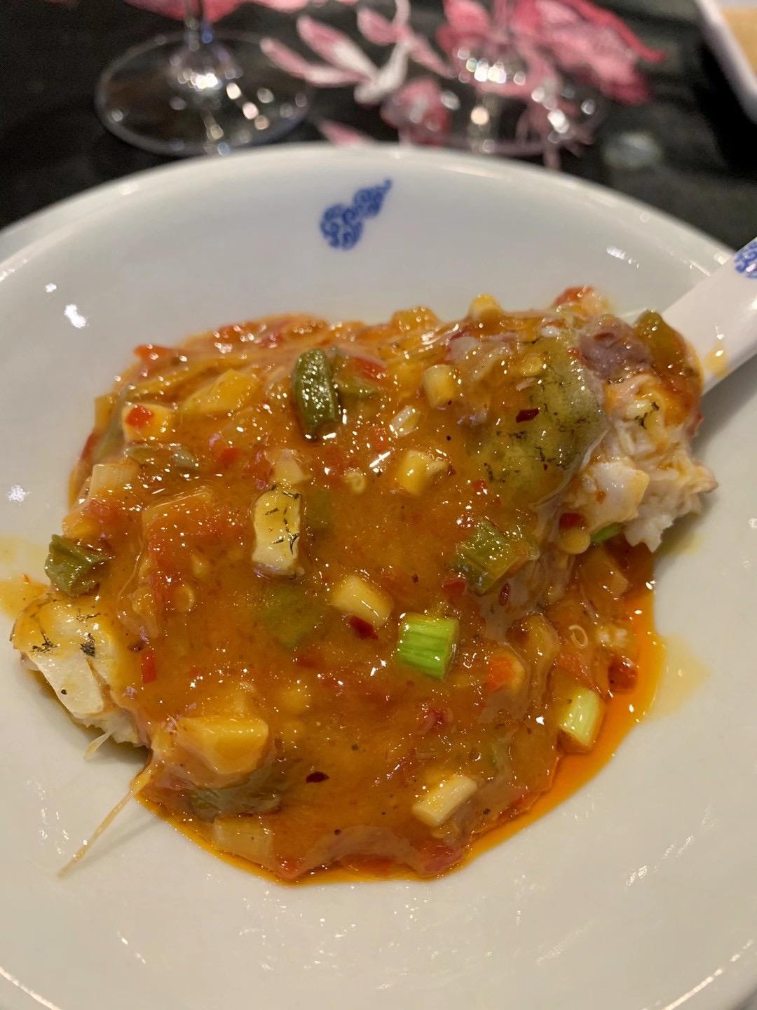 二荆条微辣清香,又带着些许的鲜甜与温柔,跟青花椒的麻香混合,最后与翘壳的鲜嫩融成不可分离的综合,与人微微的眩晕感。