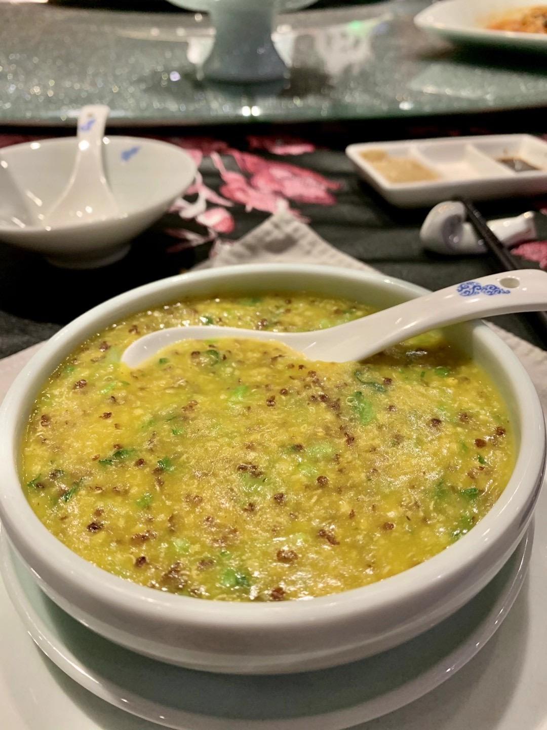 藜麦是近几年很火的减脂食物,低卡低热,鲍鱼是"海味珍品之冠",两种食材的结合很让人惊喜。藜麦天然的清香,加上鲍鱼上汤的鲜美;Q弹可口的藜麦与爽口的鲍鱼,整道菜真的是相当出彩,最后汤汁捞着米饭吃,堪称绝配。