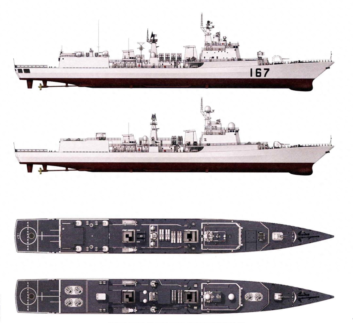 上面我们提到了一个很关键的词:应急。既然是应急产物最快的办法就是直接利用现有的资源,防空系统是俄罗斯现成进口,而舰体直接沿用6000吨级的051B的舰体(167“深圳”舰)、动力直接使用中国比较成熟的蒸汽轮机系统。其实从下面这个图我们能很清楚的看到,051C实际就是把051B改成防空导弹位置了,6000吨的舰体既要塞远程防空系统、又要充足的备弹数量、又要机库显然不可能。