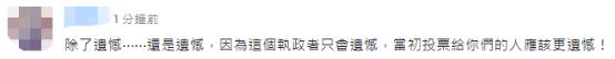 对于台外事部门的遗憾一说,有网友称,“除了遗憾还是遗憾,因为这个‘执政者’只会遗憾,当初投票给你们的人应该更遗憾!”