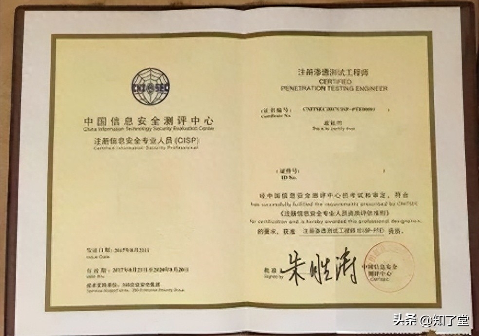 CISP-PTE即注册信息安全渗透测试工程师,发证机构是中国信息安全测评中心。