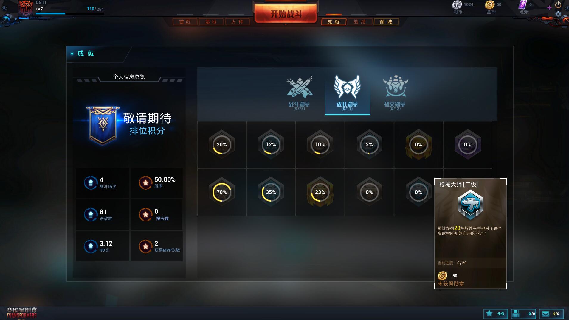作为一款国产游戏《变形金刚》的成就系统还是非常完善的,而且通过完成各种成就能够获得数量可观的金币(目前似乎还没有地方使用),不过“枪械大师”这个成就特别让人关注“累计获得20种额外主手枪械(每个变形金刚初始自带的不计)”相比这就是皮肤系统了,不过目前皮肤似乎还尚未开放。
