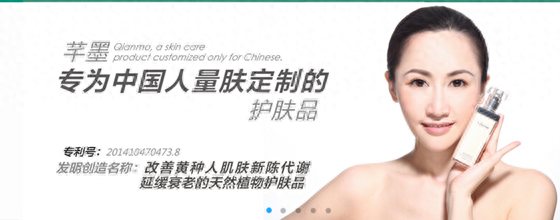 这个品牌由创始人用自己的名字命名,与整个行业数千品牌大打“进口”噱头的定位完全相反,反而是旗帜鲜明的树起“中国品牌”的标志,并且其品牌定位是“专为中国人量肤定制的护肤品”。据记者了解,该品牌已经获得“改善黄种人肌肤新陈代谢延缓衰老的天然植物护肤品”专利称号,但上市两年来的“芊墨”护肤品一直低调行事,从末做过任何广告宣传、网络推广等,仅在一个独立www.qianmoshop.com垂直官方城商上就第一年年销售超过五百万,第二年年销售超过千万,这些销售业绩完全依靠用户口口相传的口碑促成,这创造了中国护肤品行业的一个奇迹。