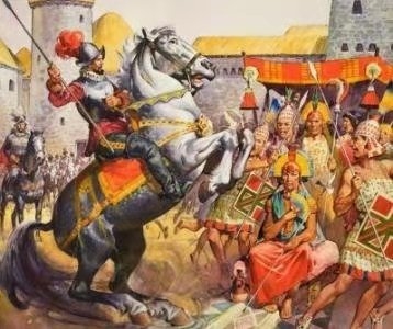 否认他们的白人身份没有任何用处,因为他们不会按照有色人种的思维行事,图为西班牙人征服印加帝国