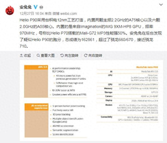 安兔兔公布联发科P90跑分成绩 162861分接近骁龙710