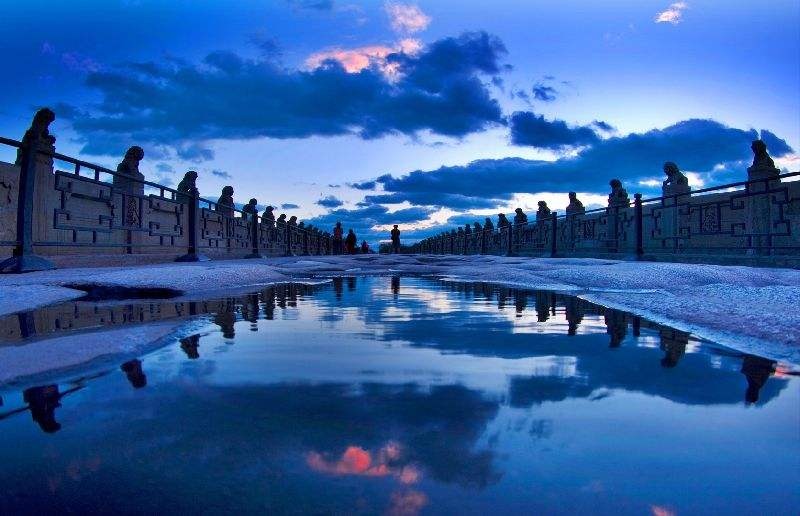 卢沟指的便是著名的卢沟桥。卢沟桥建于金世宗年间,曾经是中国北方最大的石桥。当月亮西沉之时,便有月光倒映水面之上,有种月色朦胧之美。
