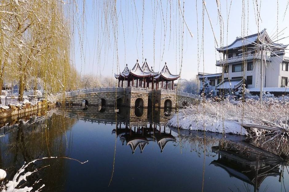 “金台夕照”又名“道陵西照”,曾经是金代的帝王陵墓,后来到明清时期成为一处景点。当夕阳西照时,阳光与夕照寺的建筑形成一番美景。