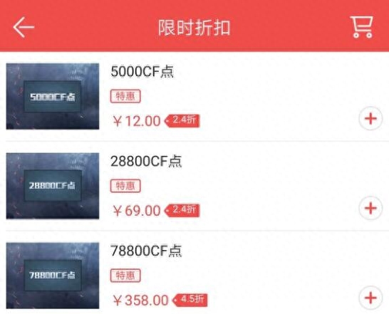 小编记得上次最低折扣为2.5折,而且额度不怎么高,所以这次限时折扣并没有抱太大希望,结果并没有涨价,5000CF点、28800CF点为2.4折,78800CF点为4.5折。
