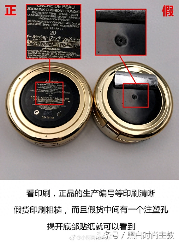 美妆鉴定,法国YSL圣罗兰羽毛气垫真假对比,快拿去参照一下!