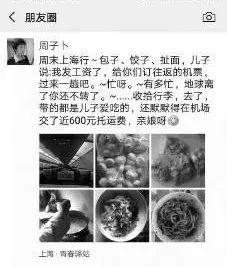 @篱上风:父母爱子之心可以理解,但是形式可以再理智一些,食材在上海当地都能买到,又不是西安独有,去了现包岂不更好?花那么多运费用实在没必要。