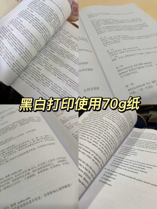 纸张的厚度真的可以!彩色打印使用80g纸,因为色彩墨比较重,使用80g为了避免色彩渗透过纸张;而黑白打印一般使用70g纸,不是那种薄薄的摸上去很质感。