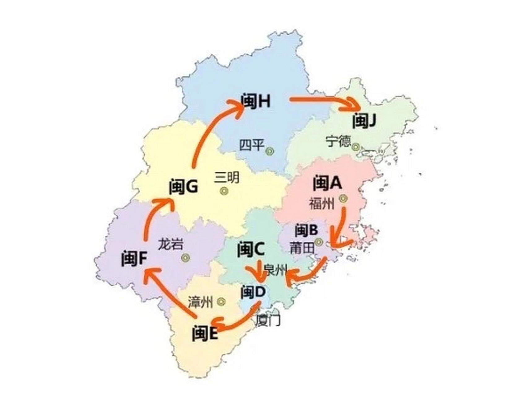 15. 福建的车牌号码是以省会福州为起点,顺时针方向依次编排的。