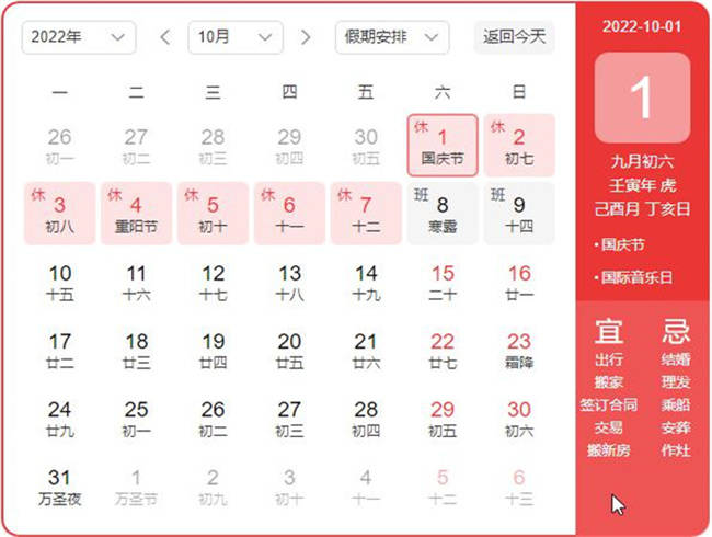 10月1日至7日放假调休,共7天