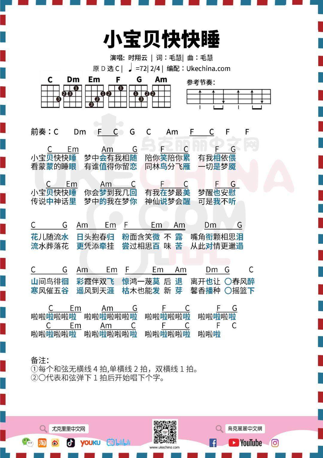 小宝贝快快睡吉他指弹 小宝贝快快睡吉他谱