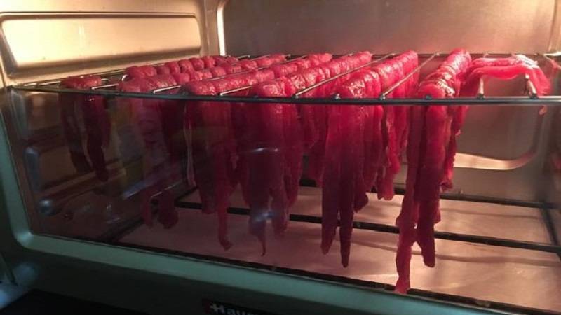 方法二:我们第二种方法是使用历史最长的一种,这种方法就是风干。我们将牛肉洗净切成条,牛肉条不要太宽。然后往牛肉中加入生抽、老抽、盐等调料腌制一晚上。随后用绳子将牛肉条拴起来,挂在家中通风效果最好的地方。第二天再把牛肉取下放进烤箱里烤一会就做好了。这样的牛肉放一个冬天都不会坏。