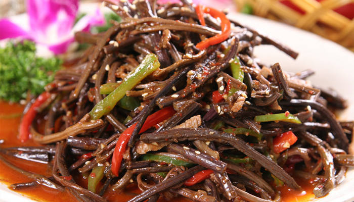 一般来说,蕨菜干要经过泡发处理,去除杂质和涩味,使其变软。蕨菜干如果是用准备炒来吃的话,最好是用50度左右的水浸泡,浸泡时一定要让水没过蕨菜干,好让蕨菜充分浸泡,在此期间,如果水冷了的话,建议可以再换一次水,一般要吃的时候就是在第一天晚上泡好,中间换一次热水,第二天中午或下午吃,浸泡时间一定要长一点,要不然菜干不能很好的发胀。