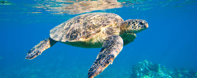 海龟不是哺乳动物,而是卵生的两栖类爬行动物,头部与背部有对称的鳞片,背部甲片呈棕色或橄榄色,夹杂放射状黄白色纹,习惯生活在亚热带近海上层,大部分则居住在沿岸浅滩,具有杂食性,主要以鱼类、甲壳动物、海藻等为食,广泛分布于太平洋、大西洋、印度洋中的温暖海域。